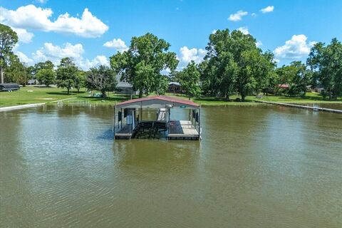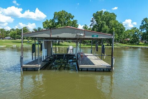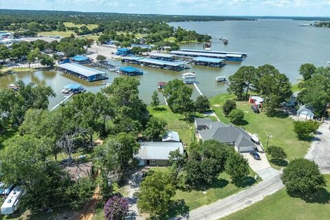 Eagle Mountainn Lake Cottage on a great subtle sloped lot overlooking West Bay Marina and fan fav West Bay Grill & Bar! (Scotty's -- IYKYK!) FUN lake getaway that includes the cutest detached guest house, plus great patio decking areas and tons of outdoor space to enjoy its pretty waterfront lot! Open design interior with 2 living areas in main house with 1 car garage, a guest house includes full kitchenette, a spacious outdoor metal storage building, and a boat dock with lift literally located right by the marina gas station!