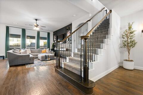 Where elegance meets comfort, this exceptional home takes the standard cookie-cutter layout and elevates it with luxury, style, and unforgettable design. From the moment you step into the grand round entrywayhighlighted by custom paint, soaring ceilings, and high-end lightingyoull feel the difference thoughtful upgrades make.This spacious 4-bedroom, 3-bath home features a dedicated office and a beautifully appointed eat-in kitchen complete with an oversized island, coffee bar, and abundant storage. The roomy primary suite feels like a personal escape with its striking contemporary tub surround and serene ambiance.Two additional bedrooms are conveniently located on the first floor, perfect for flexibility and multi-generational living. Upstairs, a large bedroom with a bonus walk-in closet is paired with a full bath, game room, and built-in deskideal for quiet study or creative workspace.Step outside to a fenced backyard ready for play, pets, or unwinding after a long day. Wi