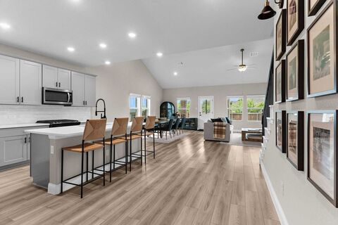 STUNNING, gently lived in, Meritage built 5 bedroom home with SUNSET VIEWS & IDEAL FLOORPLAN. Shows like a MODEL HOME and beautifully appointed with the perfect blend of style, openness and beautiful NATURAL LIGHT. Inside, you'll find a desirable floorplan that truly lives well with the spacious primary suite located on the main level along with a second bedroom, ideal for guests, multi-generational living, or a home office. Upstairs features 3 additional bedrooms and a versatile second living area or game room, offering plenty of space for work, play, or relaxing. This home impresses with its OPEN CONCEPT LIVING, stylish finishes, and energy efficient features Meritage is known for. Step outside and explore a quaint neighborhood with a SCENIC LAKE, complete with trails perfect for evening strolls and morning jogs. Off the beaten path but close to shopping, schools and highway 75. This neighborhood will attend the newly built Highland Elementary School. The refrigerator in kitchen, was