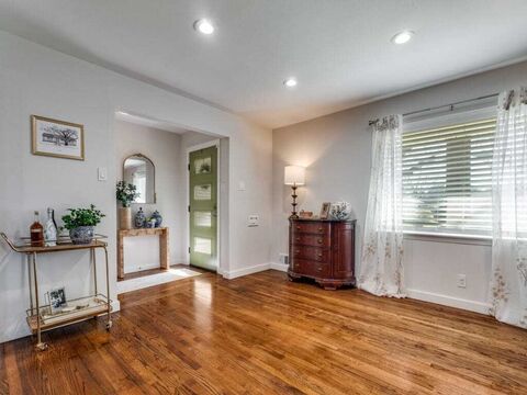 Tastefully renovated East Dallas cottage with close proximity to White Rock Lake. This inviting open floor plan offers two spacious living areas adjacent to a fully updated 2021 kitchen with elegant quartz counters, stainless appliances including a gas range, refrigerator freezer, dishwasher and built-in microwave. A convenient laundry room houses a stackable washer & dryer which will convey with the sale of the property. Richly refinished natural hardwoods in all living areas and bedrooms providing consistent flooring and attractive visual flow throughout. The primary offers two closets along wtih an en-suite bath complete with a generous bathing tub and shower combo. The secondary bedrooms share a bathroom with spacious shower. This lovely home has newer (2021) double pane windows throughout providing abundant light as well as improved efficiency, in addition to a 2021 composition roof and gutters. An attached two car garage and spacious covered patio overlooking a large play