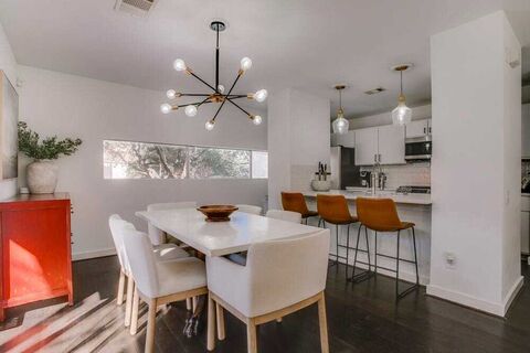 Light pours into this three-story East Dallas townhome, where high ceilings and a modern, open layout create a sense of ease from the moment you walk in. The main living level feels made for everyday life and easy gatherings, with clean finishes and a natural flow that just works. Upstairs, the entire third floor is dedicated to an oversized primary suite that feels like a true escape. Theres space to unwind, two separate closets, and a spa-like bath with a large shower and soaking tub that makes the end of the day feel earned. The first floor offers flexibility without compromise, featuring a private bedroom with a full bath, and an additional flex space that adapts effortlessly to your life, whether thats a home office, gym, nursery, or guest room. Outdoor space is where this home quietly overdelivers. A private patio sits just off the living area, while downstairs, the rare oversized corner yard offers room to breathe, entertain, or simply exist outdoors in a way most townhomes ca
