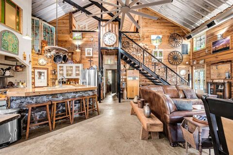 Check out this Barn dominium sitting on 1.86 acres Main home has 3 bed 2 bath large open floor plan with restaurant style size gas stove for cooking amazing meals with your loved ones. Large walk in pantry with Very big Island to spread out and with Concrete counter top that matches the concrete floors. Plenty of space to spread out for entertaining. Beautiful cedar walls and large windows for excellent natural lighting. The Primary bedroom is a awesome loft style space that overlooks the family room and kitchen. there is a claw tub for relaxing baths, separate huge walk in Shower. Walk in closet for all your accessories with perfect storage space. Beautiful Metal stair case and high vaulted metal Ceilings, absolutely stunning. Nestled in the county life style. Second living quarters for guests or Mother in law suite. Its a one bedroom Open floor plan with Kitchen and a huge walk in shower and Washer and dryer hookups. Separate electric meters. There is a slab already plumbed and pou