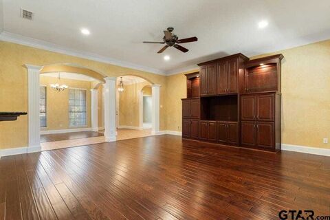 This kind of property doesn't come along often and it's truly amazing! Featuring beautiful wood floors, detailed trim, and granite countertops, this home offers quality throughout. The spacious kitchen includes a double oven and gas cooktop making it perfect for cooking and entertaining. The primary suite features an ensuite bath with a large walk-in closet, separate water closet, garden tub, and oversized shower. This flexible floor plan can serve as a 4-bedroom, 2.5-bath home with a 4-car garage, or be configured for multi-generational living with a suite that includes a full bath, sitting area, bedroom, and its own 2-car garage with separate access. With two 2-car garages-one ideal for boat storage, an inviting front porch and a large back patio, and a prime location in the desirable Williamsburg Village neighborhood, with it's community building and playground, this home offers comfort, versatility, and plenty of space inside and out!