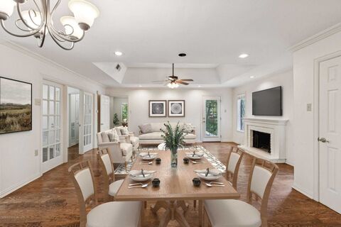 Nestled at the end of a peaceful cul-de-sac in the serene, gated waterfront community of Chandlers Landing on the banks of Lake Ray Hubbard, this rare one-level home offers the perfect balance of comfort and tranquility. Featuring 2 spacious bedrooms, 2 bathrooms, and a separate study, this property is ideal for those seeking a private, low-maintenance lifestyle with a touch of luxury. Step inside to discover gleaming hardwood floors throughout and a freshly painted interior that exudes warmth and style. The updated kitchen boasts beautiful granite countertops, stainless steel appliances, and a cozy breakfast nook, making it the heart of the home. The primary bathroom has been thoughtfully upgraded with a modern, walk-in shower for added convenience and elegance. The large, private yard invites you to relax or entertain while surrounded by nature, providing the ultimate peaceful retreat. A two-car attached garage adds extra convenience and storage space. Located in the desirable Chandl