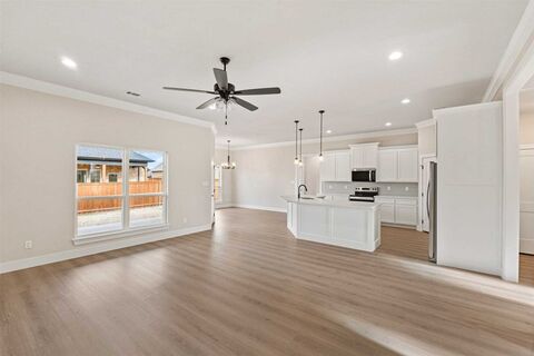 Quality Construction From Start To Finish! Gorgeous new construction home in the heart of Mabank! This 4-2-2 provides a very spacious & versatile floor plan with a flex room that could serve as an office or fourth bedroom. Very open concept in living, kitchen, & dining areas. Beautiful finish outs featuring tray ceilings, recessed lighting, crown molding, rounded corners, quartz countertops, tile back splash, & luxury vinyl plank flooring. Great split bedroom arrangement with nice master suite that offers counter height vanity with dual sinks, lighted makeup vanity, large fully tiled shower, separate tub, & generous walk-in closet. Wonderful storage space through out the home. Great covered patio with ceiling fan. Exterior features include fully sprinkled & sodded yard, flood lights, gutters, & wood privacy fenced backyard. Stone Meadow subdivision is a prime location with close proximity to schools, shopping, dining, Cedar Creek Lake, & Hwy 175 for easy commute to DFW & Tyler!