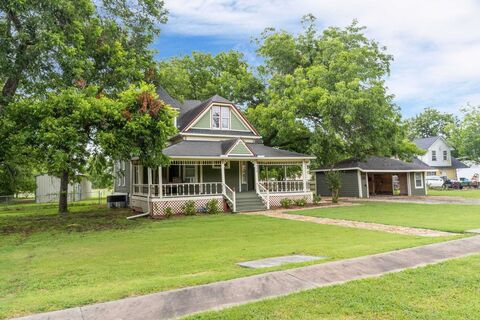 Step Back in Time with This Historic Queen Anne Victorian on Nearly an Acre in Howe, Texas. This one-of-a-kind gem, built in the early 1900s for Dr. J.O. Matthews and later owned by Dr. Joseph Lafayette Shelley, beautifully blends timeless character with modern comforts. Nestled on a spacious lot just off of Hwy 5now Denny Streetthis charming home offers peaceful country living with city conveniences just 20 minutes from both McKinney and Sherman. The inviting wraparound front porch is the perfect spot to enjoy a sunrise coffee or take in the sunset views. Inside, you'll find hardwood flooring that flows through the living room and formal dining room, each with its own mock fireplace, adding to the charm of the room. The main level offers a primary bedroom with bath, as well as a secondary bedroom and an additional full bath. From the foyer, a staircase leads to an expansive upstairs retreatcurrently configured as a large bonus room, two additional bedrooms, and full bath. The curre
