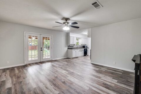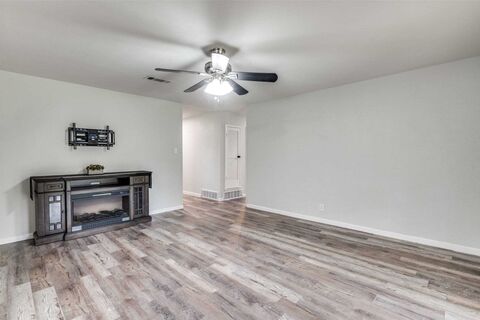 A remarkable opportunity to invest in your future in a well-established neighborhood, ideally timed for the holiday season! Turn key and move in ready, this home offers a spacious floorplan with endless possibilities for customization. It features an open floorplan that flows easily with ceiling fans throughout the home for your comfort. Your kitchen has a window overlooking your beautiful backyard. You could have a dining area near the living room, and you'll love the electric fireplace. Three spacious bedrooms, and a versatile room that can easily be an office or add a closet to accommodate an additional bedroom. The property boasts an expansive fenced-in backyard with a covered patio, ready to be transformed according to your vision. Consider incorporating a pool, garden, or an oversized spa-inspired deck with a fire pit. With the existing solar panels, you can enjoy more affordable electric bills all year long in the Texas weather. This home includes a newer roof, beautiful LVP flo