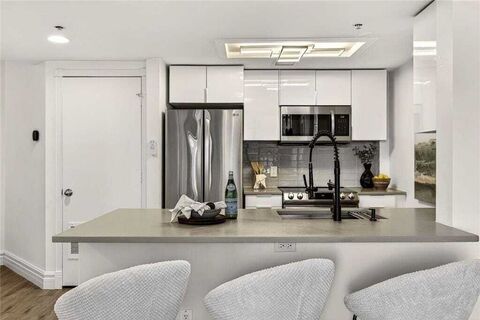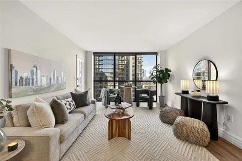 Back to Market at no Fault to Seller Tucked just behind the High Museum of Art, this rare, corner two-bedroom, two-bath condo, floating high above the city on the 24th floor, is the perfect balance of quiet, affordable luxury you've been waiting to find! Dual east- and west-facing views, this light-filled unit boasts an updated kitchen with quartz countertops, stainless steel appliances, and modern - streamlined cabinetry, complemented by the water-resistant hardwood style laminate flooring throughout. BOTH bathrooms have been entirely renovated with walk-in showers, bespoke tile and floating vanities that deliver a clean, elevated, spa-inspired experience. Oversized primary bedroom with King Sized bed and a Massive walk-in custom closet for every outfit you could dream of wearing, as well as a sliding door directly out to the stunning balcony - perfect for a morning cup of coffee or evening cocktail! Very well appointed secondary bedroom with incredible sun soaked light and view