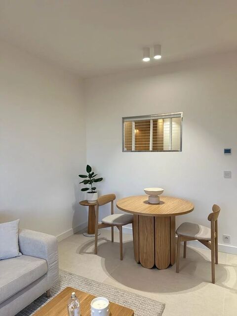 The apartment comprises a bright living/dining room, a bedroom with en suite bathroom, and a fully equipped kitchen.