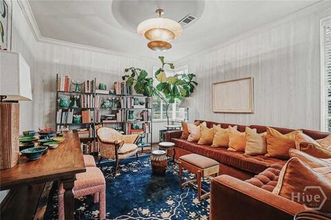 Located in the heart of highly sought-after Ardsley Park, this striking International Style residence sits on a rare quadruple lot and represents one of Savannahs most architecturally significant homes. Designed in 1947 by renowned architect Cletus Bergen and previously featured in Architectural Digest and Vogue, this 4BR/3.5BA home blends iconic mid-century modern design with thoughtful updates for todays lifestyle.Preserved original details include steel casement windows, sculptural plaster walls with dramatic curves, a sunken dining room, and a stunning living room with expansive curved bay windows. Period baths feature original porcelain fixtures and Vitrolite glass tile, while the renovated chefs kitchen and spacious primary suite provide modern comfort while honoring the homes architectural integrity.Designed for seamless indoor-outdoor living and entertaining, the property offers a private landscaped slate courtyard, generous side yard, and ample off-street parking.
