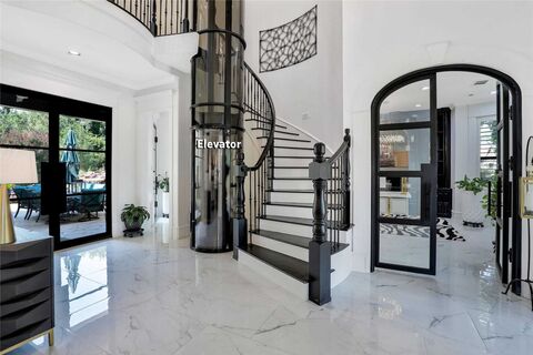 Timeless Elegance Meets Modern Luxury in Exclusive, Gated Stonebridge Estates. Presenting over 7700 sqft situated on a 1.1 acre greenbelt lot with $350k in recent seller updates! Enjoy breathtaking panoramic treeline views from nearly every vantage point - from large picture windows, custom wrought iron & glass doors + retractable sliders in the living room. Sophisticated outdoor entertaining all year long...whether you're relaxing by the waterfall swimming pool-spa, under the pergola-covered patio or warming up by the backyard firepit. This porte cochere plan boasts 4 split garages, 6 bedrooms including an in-law suite down, an elevator to the primary bedroom, an executive study with a fireplace, exercise room or second office, large gameroom & a decked out media room. You'll love the redesigned kitchen featuring Calcatta Quartz counters, Chef Z-Line gas range & custom Zephyr vent hood, a SubZero refrigerator, Wolf appliances including 2 dishwashers & double ovens + 2 Thor beverage dr