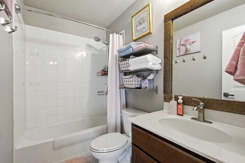 Fall in love with this stunning 4 bedroom home accented with beautiful rock-stone detail, in Woodcreek just minutes from the community amenity center featuring a pool, playground, and park. This meticulously maintained home showcases extensive upgrades throughout, offering both style and efficiency. The kitchen is thoughtfully updated with a modern backsplash, upgraded cabinet hardware throughout, upgraded induction and convection range, brand new microwave installed Dec. 2025, new dishwasher, and an upgraded farmhouse sink with designer faucet. A custom beverage bar with added storage enhances both functionality and entertaining space. Interior highlights include upgraded lighting throughout, new ceiling fans, newer designer paint, luxury vinyl plank flooring in the front bedrooms and primary suite, widened front 2 bedroom closets with custom sliding barn wood doors, and a beautifully custom designed primary closet. The primary bathroom includes custom cabinetry and upgraded faucets
