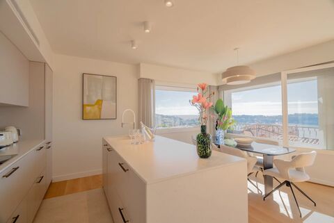 With its independent entrance, access is through a private patio of discreet charm, leading to a vast reception room bathed in natural light and featuring a sleek open-plan kitchen. From here, a generous terrace facing the sea invites you to pause and admire the view.
