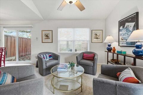 Enjoying privacy, quiet location, and a lovely view of the wooded area and small creek and green area. This townhome is not to be missed! Instead of overlooking a parking lot, this unit is rear-facing in the cul-de-sac to the east of the main gate. Centrally located near Waterside, Fort Worth Country Day School, Clear Fork, and major arteries making easy work of any destination. Open design, freshly painted, granite countertops in kitchen and bathrooms, woodburning fireplace, full size utility area and a delightful courtyard patio overlooking the creek and woods. Windows were recently replaced. (Big plus!) There is a primary bedroom with ensuite bath on the ground floor. If one prefers to sleep with a treetop view, there are two additional bedrooms on the second floor with a shared hallway bathroom. The washer, dryer, and refrigerator are included in the sale. There is one assigned covered parking space, with additional parking for guests. There's also a community swimming pool and