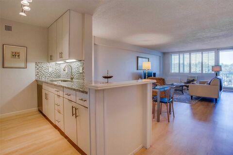 Experience refined city living along the tree-lined streets of Turtle Creek Boulevard. This updated north-facing residence offers peaceful views toward Highland Park and combines classic style with modern comfort. The updated interior features low-maintenance engineered wood floors, an open kitchen with granite countertops, stainless steel appliances, and a clean, timeless design. Natural light enhances the open layout, creating a comfortable and versatile living space. Enjoy unmatched convenience with The Shops at Turtle Creek Village just steps awayoffering dining, grocery, and various city servicesand quick access to abundant culinary and shopping adventures in West Village, Highland Park Village, and on McKinney Avenue, Oak Lawn, and Cedar Springs. The building continues to enhance its appeal with current improvements to parking and the porte-cochre, along with recent updates to the pool, balconies, and roof. ALL ASSESSMENTS FOR THESE MAJOR IMPROVEMENTS HAVE BEEN PAID IN FULL BY