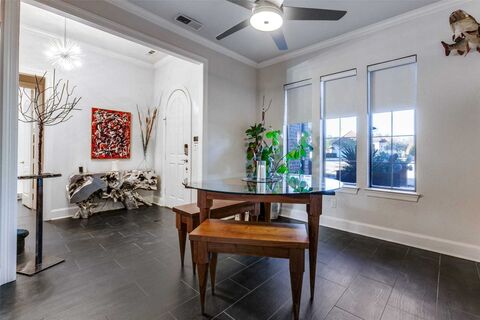 Tucked in the sought-after Buffalo Creek community, this thoughtfully updated 4-bedroom, 3-bath home blends modern design with effortless indoor-outdoor living. Clean lines, curated finishes, and functional spaces create a home that feels both elevated and livable.The heart of the home is the sleek, modern kitchen, featuring stainless steel appliances, including a 6 burner stove with 2 ovens and a griddle, a pot filler, a 2nd convection oven, a warming drawer, a dishwasher, a microwave, a trash compactor, a beverage fridge, and a wine fridge. The kitchen aslo has a striking black tile, and a generous island that opens seamlessly to the main living areaideal for everyday living and entertaining alike.Just off the kitchen, a true scullery provides exceptional storage and a secondary sink, keeping the main kitchen pristine while adding a layer of luxury and practicality rarely found at this price point.The living room is anchored by a contemporary fireplace and an 72 inch television, w