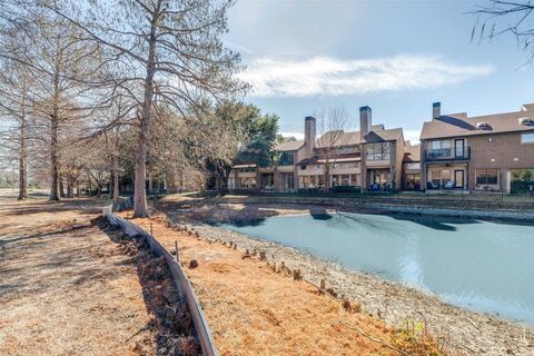 Located at 5600 Westgrove Drive in Dallas, this stunning 2,128 sq ft residence offers an exceptional setting backing directly to the golf course, tranquil waterways, and waterviews that can be enjoyed from every rear-facing room. Thoughtfully designed and beautifully updated, the property features two bedrooms, two and a half baths, and an inviting blend of comfort and sophistication. The living area is anchored by a fireplace, creating a warm and elegant focal point. A second fireplace enhances the sitting area of the primary suite. The remodeled kitchen is both stylish and functional, showcasing stainless steel appliances, a convection microwave that doubles as a second oven, quartz countertops, and striking sea-glass tile extending from counter to ceiling, with a coordinating backsplash at the cooktop and prep counter. An eat-in kitchen area complements the formal dining room, making the home ideal for both everyday living and entertaining. Both the living and the sitting area overl