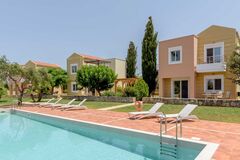 The outdoor areas are designed to offer tranquility and privacy, ideal for enjoying the Cretan climate by the pool or relaxing in the garden.