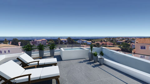 The villa's outdoor areas are perfect for entertaining and relaxation. A southwest-facing orientation maximizes natural light, while the heated pool and rooftop jacuzzi offer breath-taking sea views—ideal for soaking up the Algarve sunshine.