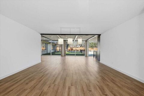 Welcome to 6470 Kirkwood: Mid-century modern done right! Clean lines, walls of glass, and a layout that actually lives well. This single-story home sits on a generous lot with mature trees and strong curb appeal, blending classic stone with fresh exterior updates. Inside, the space opens up immediately. Floor-to-ceiling windows and oversized sliders bring the backyard in and fill the home with natural light. The kitchen is central to the home and features custom dark cabinetry, sleek hardware, stainless appliances, gas range, mosaic tile backsplash, and a large butcher block island that doubles as prep space and gathering spot. It flows directly into the main living area with exposed beams and a stone fireplace, creating one seamless space for everyday life and entertaining. The flexible floor plan offers split bedrooms, updated finishes, and an outstanding indoor outdoor entertainment room with fireplace, built-ins, and a wet bar perfect for any gathering. Step outside and it gets eve