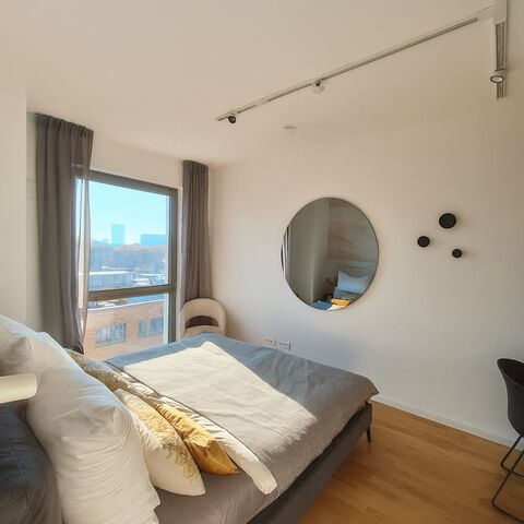 In the heart of the capital, in the heart of the neighborhood, in the heart of life: Whether it's grilling with friends in the nearby Volkspark Friedrichshain, strolling through the flea market at Boxhagener Platz, or enjoying a drink at one of the many cozy cafes - Friedrichshain leaves nothing to be desired. And the location is perfectly connected: Alexanderplatz is just two U-Bahn stops or four tram stops away, the main station is directly accessible via the new U5, and the airport? You can reach the terminal by car in just 40 minutes. That's Midtown living!