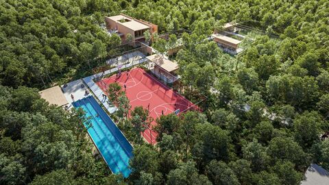 The amenities are designed to foster community, natural movement, and recreation. Imagine having access to an exclusive cenote club, an extensive network of bike paths and walking trails, tennis, padel, and pickleball courts, a community organic orchard, and multiple swimming pools designed for all ages. From lounge areas and a cinema to a skate park and pet park, every detail is thoughtfully designed to enrich your daily life and that of your family, promoting an active and social lifestyle in a secure and privileged environment.