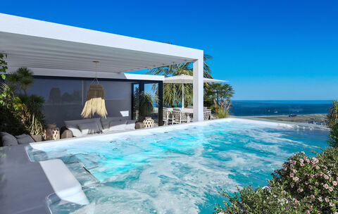 The top floor apartment benefit from a spacious lounge roof terrace equipped with a built-in E-pool.