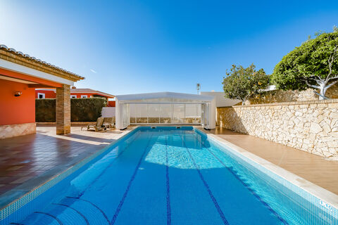 Nestled on a generous 1,667 m2 plot, the villa boasts a beautifully landscaped garden featuring an array of fruit trees and a spacious swimming pool equipped with a removable cover for year-round enjoyment.