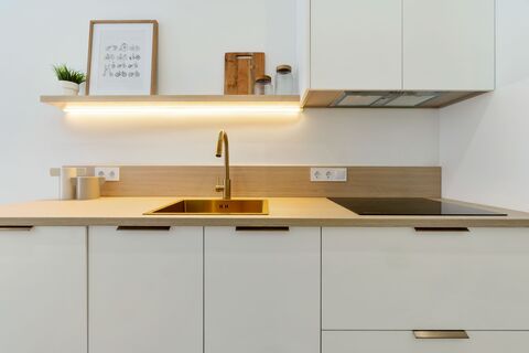 The home is accessed via a pleasant northwest-facing patio, a wonderful place to enjoy the afternoon sun and warm evenings with family and friends. Right at the entrance you are greeted by a bright and airy living room with an open plan layout, which creates a social and welcoming feeling. There is plenty of space for both a sofa group and a dining table, and the modern, fully equipped kitchen is elegantly integrated into the living area with oven, stove and dishwasher - everything for a comfortable and functional everyday life.