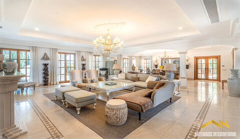 This 1,228 m2 detached villa set on a 8,020 m2 plot, features the main floor with an entrance hall, spacious open-plan living room with dining area and fireplace, a modern fitted kitchen with an island and breakfast bar, four en-suite bedrooms, including one with a built-in office, a guest bathroom, five further bedrooms on the first floor, four bathrooms and a lower level featuring another four en-suite bedrooms, a gym, Turkish bath, sauna, cinema room, TV lounge with bar, wine cellar, a games room complete with a billiard table, a triple garage, a laundry area and multiple lounge areas. Outside are the large swimming pool, separate children's pool, terraces, a covered outdoor kitchen and barbecue, Al Fresco dining areas, a private football pitch that can also serve as a tennis court, a children's play area, and a meticulously maintained vegetable garden. Layout Entrance hall, guest bathroom Open-plan living and dining room with fireplace Modern fitted kitchen with island and breakfast bar Basement with gym, Turkish bath, sauna, cinema room, TV lounge with bar, wine cellar, games room Thirteen bedrooms and twelve en-suite bathrooms Triple garage, laundry area Outside Private swimming pool, children's pool Sun terraces and a covered dining area Outdoor kitchen and BBQ zones Gardens and ample parking Football pitch that can also serve as a tennis court, children's playground Location Located within walking distance from the beach and close to golf courses, and a short driving distance from all amenities. At a glance Three-storey 1,228 m2 build, 8,020 m2 plot Built in 2011 Thirteen bedrooms, thirteen bathrooms Basement, gym, Turkish bath, sauna, cinema room, TV lounge with bar, games room Laundry room, wine cellar Triple garage, parking Pool, terraces, covered dining, outdoor kitchen, BBQ Gardens, football pitch