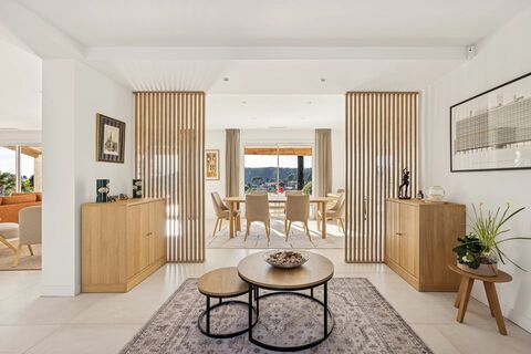 Discover this magnificent single-storey Provencal property, offering approximately 288 sqm of living space and fully renovated with great care. Set on a 2,200 sqm plot, this west-facing villa enjoys a peaceful environment and boasts breathtaking, elevated views.