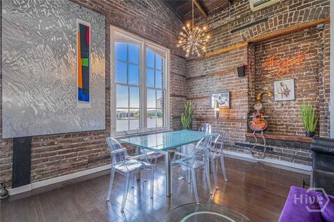 Perched above Savannahs iconic River Street next to the Savannah Cotton Exchange, 42 East Bay Street, Unit 5 is an extraordinary loft-style residence that feels more reminiscent of a classic SoHo loft than anything typically seen in the Historic District. Encompassing approximately 2,190 square feet, this one-of-a-kind condominium showcases soaring ceilings, exposed brick walls, dramatic beams, and a striking industrial-modern aesthetic that creates an unforgettable living experience.Expansive windows and French doors frame breathtaking views of the Savannah River, flooding the open living and entertaining spaces with natural light and ever-changing waterfront scenery. The designer kitchen is equally impressive, featuring sleek contemporary cabinetry, a substantial island, high-end appliances, and an ideal layout for entertaining on a grand scale.The showpiece of the property is the massive private rooftop terracean exceptional outdoor living space with panoramic river and ci