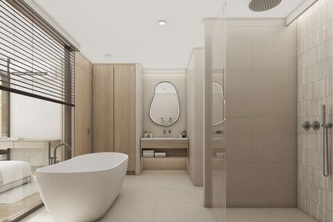 A rooftop swimming pool with sweeping views, fully equipped gym and a wellness spa featuring sauna, steam room and ice bath. Residents also enjoy a restaurant and bar, co-working lounges, a kids' club, EV charging stations, solar-powered shuttle service and secure underground parking. Lifestyle facilities extend to padel courts, an outdoor cinema and a private golf simulator. The development is also pet-friendly, with designated areas in place for residents with furry companions.