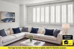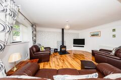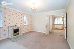 The property enjoys an attractIve approach wIth a neat north-facIng frontage and ample off-street parkIng. SteppIng through the entrance porch, complete wIth useful storage, the home ImmedIately feels brIght and welcomIng. The maIn lIvIng room sIts to the front of the property, wIth generous natural lIght flowIng through large wIndows and a gas fIreplace creatIng a natural focal poInt. A well-balanced layout make thIs a comfortable and versatIle space for everyday relaxatIon or entertaInIng.