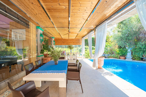 Looking for your private oasis on the Marbella Golden Mile? This classic Mediterranean-style residence offers more than you could ever imagine. Situated in Las Lomas del Marbella Club with La Concha mountain as a backdrop, the villa is perfectly nestled within a 1.018 m plot, including a vibrant resort-like pool area, lush vegetation, and mature trees. The home blends the essence of traditional Spanish architecture with a modern layout, perfect for entertaining larger parties or intimate relaxation; this is the ideal hideaway for all occasions. Move in or personalise this unique property in one of the area's most coveted enclaves. This rare offering is not to be missed, only minutes to the beach, the Golf Valley in Nueva Andalucia and Puerto Banus's high-end shopping and dining.West facing the villa is distributed over 3 carefully planned levels. The entrance opens to an architecturally stylish living room with high beamed ceilings overhead, a decorative fireplace and designer light fixtures. The gorgeous kitchen with high-end appliances opens to the spacious dining room and leads to the private exterior. There are also 2 double guest bedrooms on this floor. Upstairs is the lovely primary suite, and the lower level has 2 ample double bedrooms with viewing terraces, an all-purpose room and independent service quarters. Other notable features include an Andalusian fountain in the garden, a 2-car garage, under-floor heating, double-glazing and a Paradox security system.Las Lomas del Marbella Club on the famed Marbella Golden Mile is a much sought-after development situated just north of the Puente Romano Beach Resort. Outstanding location with easy access to shopping and dining and near several private bilingual schools. Less than 5 minutes by car to the small commercial centre of Le Village, which offers several eateries, a hairdresser and more. Another 500m up the istan road is the popular Manolo Santana Racquets Club Tennis & Padel.