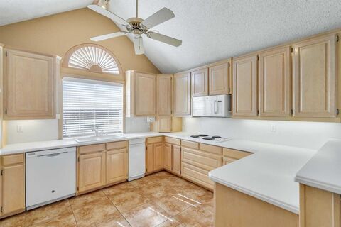 Centrally located in the heart of the DFW Metroplex, this well-maintained Bob Doverspike custom built home has had just one owner and offers 4 bedrooms, 2.1 bathrooms - the 4th bedroom could also be a dedicated office space ideal for working from home or your creative pursuits. Built in 1992 and lovingly cared for, this home is ready for your personal taste and vision to make it your own. Don't miss the recessed lighting, tray ceilings, crown molding, vaulted & beamed ceilings!A double-sided fireplace anchors both the living and family rooms, creating warmth, character, and a natural gathering point while allowing each space to retain its own purpose. A wet bar near the fireplace creates even more ambiance! The layout is functional and flexible, offering comfortable everyday living with room to personalize.Step outside to a backyard retreat featuring a sparkling pool and a covered patioperfect for morning coffee, relaxed afternoons, or entertaining friends as the sun sets. Gas