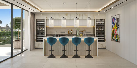 Poised in the coveted Los Flamingos Golf community in Benahavis, this exemplary villa project boasts all amenities that one has come to expect in luxury lifestyle living. Every inch of this magazine-worthy residence has been carefully designed with high ceilings, meticulous details and grand-scale rooms. A unique opportunity for the modern golfer or those who seek a tranquil lifestyle with picturesque views. Close to high-end shopping and dining in Puerto Banus and only minutes away from the beach. A short drive to all the necessities, including private schools in both Estepona and Marbella. One cannot ask for a better location to live the Costa del Sol dream.Upon entry, the home is the epitome of a bright, airy, open-concept floor plan that includes the living room, kitchen and dining area. Huge picture windows and sliding doors throughout the villa maximize the natural light and allow for the gentle sea breeze with a clear view of the golf course. The 5 bedrooms are beautifully appointed with ample closet space and viewing windows. No detail was missed, from the skilful design and quality to the top-of-the-line amenities planned to meet the expectations of the most discerning buyer.Los Flamingos Golf is a tranquil and safe residential neighbourhood with 24/7 gate-guarded security. Located midway between Estepona and Puerto Banus and near the quaint town of San Pedro, which offers a wide range of restaurants, cafes, and independent boutiques. A short drive to numerous sports and leisure facilities as well as top-rated international schools. Nearby is the village of Benahavis, known for its picturesque narrow streets, whitewashed houses and excellent restaurants, ranging from traditional Spanish cuisine to international fusion dishes. Many of the restaurants offer stunning views of the surrounding mountains and countryside. Mlaga-Costa del Sol Airport is approximately 50 minutes by car, an easy commute on the AP-7 motorway.