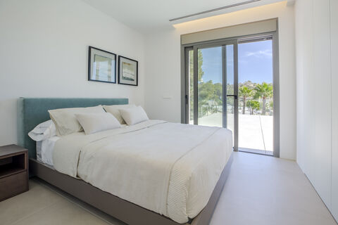 The design of the villa Collalba presents a contemporary style architecture, with straight and simple lines, and whose life is open to the outside, providing spaciousness and functionality in each of the rooms of the house, thus guaranteeing the exclusive Mediterranean lifestyle. Villa Collalba belongs to the most exclusive community of villas in the resort; the Lima community, designed with the highest standards of quality, exclusivity and elegance, both for its villas and in its common areas. The houses are integrated with the Mediterranean forest trees through spectacular garden terraces and large windows that blend the interior of the house with its natural environment.