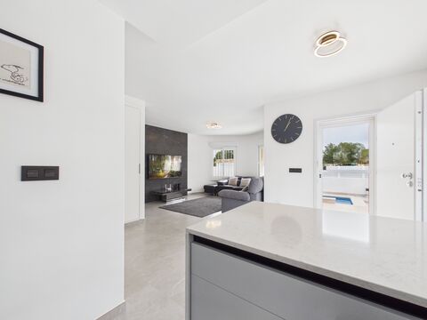 immaculately presented and fully refurbished detached villa offering 3 bedrooms and 2 bathrooms, a private swimming pool, and walking distance to all amenities, including two supermarkets, in the highly sought-after village of Pinar de Campoverde.
