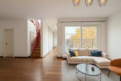 Die Erschliessung erfolgt uber zwei Treppenhauser, eines davon mit Treppenlift. Die Zugange zum Erdgeschoss sind barrierefrei, zusatzlich steht ein Kleinlastenaufzug zur Verfugung. Das Erdgeschoss ist fur gastronomische Nutzung geeignet und kann bei Bedarf separat vermietet werden. in Erd- und Obergeschoss befinden sich jeweils acht grosszugige Raume, erganzt durch Nebenflachen, Kuchen und Sanitarbereiche, teilweise mit Duschen und barrierefreier Ausfuhrung.