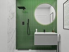 Полностью оборудованные ванные комнаты с мебелью, зеркалами, освещением и душевыми перегородками