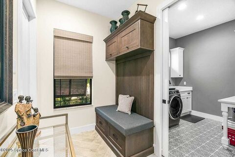 West Indies-style estate on 1.61 acres in Merritt Island! This custom home offers a chef's kitchen with 12-ft island, hidden pantry, wet bar, and luxury finishes. Main house has the primary suite and a private in-law suite with a separate 2-bedroom casita and game room. Solar heated saltwater pool and spa, EV charger, 3-car garage, high impact windows, trey ceilings, and three zoned Sonos audio system. Partial Banana River views, smart lighting, and expansive courtyard create the perfect indoor-outdoor lifestyle. Ideal for entertaining or multigenerational living. RMSZAPP/SUB2ERR.