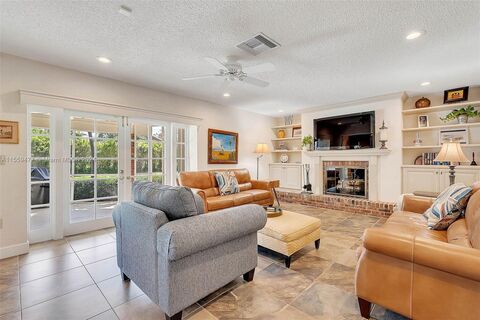 Welcoming 4 bedroom/ 2.5 bath home on an oversized, park-like lot (including a second folio) totaling 31,036 sq ft in a wonderful pocket of North Palmetto Bay. Great floorplan includes formal living and dining rooms. Lovely family room with fireplace and built in book shelves. Kitchen with breakfast nook has French doors leading to the patio. Tile and laminate flooring. Primary suite with walk in closets, updated bath with dual sinks and shower, overlooks screened pool and patio. Indoor laundry room. Circular driveway with side entry 2 car garage. Amazing lot with space for tennis court, and potential for so much more.