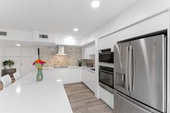 This beautifully updated, sprawling, 3bed 2.5bath, beachfront condo can now be yours! The elevator brings you directly into your private foyer, highlighted by beautiful porcelain floors balanced against the backdrop of turquoise ocean waters. Modern casual touches throughout match any occasion from relaxing with the family or hosting a party. Highlights include a wraparound balcony, a chefs' kitchen with an induction cooktop, French door wall oven, rich natural wood cabinets, quartz counters, extra beverage coolers, updated bathrooms, and an expanded primary closet with built-ins! Located in a luxury 2 tower beachfront compound with tennis courts, SUP/Kayak storage, East and a West pool, hot tub, gyms, pool side Cafe, club room, valets, front desk staff, and a dog park.