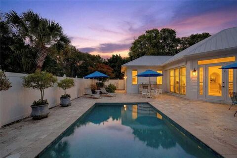 Key Westinspired cottage residence centered around a private courtyard, offering a 2BR/2BA main home plus a 1BR/1BA guest casita. Thoughtfully designed with custom millwork, shell stone floors, and an airy open floor plan ideal for effortless entertaining. The chefs kitchen showcases Caesarstone Quartz countertops and Miele appliances. Solid CBS construction, impact glass, and a metal roof. Deeded beach access completes this exceptional offering. Sizes approx./Subj. to error.