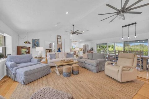 Wake up to daily dolphin & manatee sightings from your backyard at this unique riverfront home, complete with a private dock, 12,000-lb boat lift, and newly refinished seawall! Solid concrete block construction on both levels with coastal finishes, wood and travertine floors & easy roll-down hurricane shutters. Immaculately maintained with an air-conditioned garage, rebuilt well pump, new electrical panels, updated irrigation, and stunning landscaping enhanced by fruit trees and new lighting. Private, peaceful, and just steps from the ELCperfect for boaters and nature lovers alike! Rmszapprox
