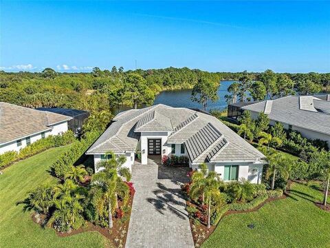 Breathtaking lake view with contemporary upgrades in this stunning Redmond model with 3 bedrooms plus a club room, 3 baths in the exclusive Bent Pine Golf Community, minutes from Vero's sun-drenched beaches and vibrant downtown. Features include soaring coffered ceilings, elegant tile flooring, and a chef's kitchen with KitchenAid appliances, Monogram cooktop, quartz countertops and a beverage/wine cooler. Enjoy a saltwater pool/spa with a heater and chiller, professionally landscaped with low voltage lighting, impact windows, dual-zone AC, upgraded lighting, water filtration system, motorized blinds, and an epoxy-coated 2-car garage with workshop plus a golf cart garage, both with A/C and much more--completing this exceptional coastal retreat. rmszappr&sub2err