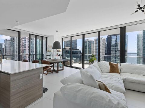 Stunning Northeast corner unit right in the heart of our Magic City, Miami and Brickell area. State-of-the-art kitchen adorned with Bosch appliances and top tier luxurious cabinetry. Equipped with 2 beds plus a den and 2 bathrooms. Enjoy 560 square feet of a wrap around balcony with breathtaking city and water views. Private foyer entrance leads into the spacious living areas with split floor plan and spacious bedrooms. Floor to ceiling impact windows allow for abundant natural light.. Enjoy the luxury of having Resort style amenities including a private sky deck, gym, spa, and additional pool for residents and hotel guests. Tons of amazing restaurants, shops, nightlife and public transportation. Washer and dryer in the unit and one assigned parking space.
