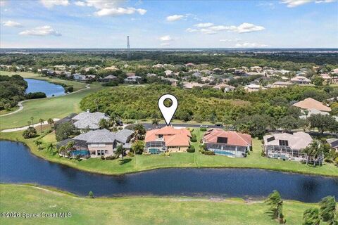 Tucked away on a private cul-de-sac in the gated subdivision of Baytree, this Arthur Rutenberg beauty is where elegance meets everyday fun! With 4 bedrooms, 4 baths, and a 3-car garage, there's space for everyone, and everything (tons of storage)! The heart of the home opens to a heated pool and lanai with sliders for seamless indoor-outdoor living. The designer kitchen is a chef's dream with granite countertops, a double oven, a spacious island, and a gas cooktop. Cozy nights come easy with a gas fireplace and custom surround sound, perfect for movie marathons or entertaining. Upstairs, a spacious rec room is ready for games, hobbies, or hangouts. Step outside and soak in views of the 13th green at Baytree National, surrounded by lush landscaping and amazing views of rocket launches. This home is equal parts luxury and lifestyle, come see why you'll never want to leave!
