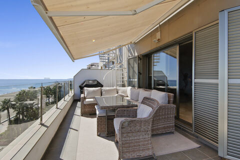 This attractive duplex penthouse offers a rare combination of space, comfort, and location. With three bedrooms and three bathrooms, the property enjoys an ideal position in the heart of Estepona, just a short walk from the beach and all local amenities. Despite being in the town center, the apartment offers a wonderful sense of privacy and calm, with uninterrupted views of the sea that create the feeling of being on a boat.The main level features a generous open-plan living and dining area, designed to make the most of the natural light and sea views. Large windows and sliding doors open onto a terrace that overlooks the coastline an inviting spot to relax or entertain. On this same level, there are two comfortable bedrooms and two modern bathrooms, offering practical and convenient living.Upstairs, the first floor hosts an additional bedroom with its own terrace, enjoying the same spectacular outlook. There is also a versatile extra room currently used as a gym, which could easily be adapted into a home office, guest bedroom, or studio space depending on your needs.One of the highlights of this property is its private pool, a rare feature for a central location. Here, you can enjoy a swim or simply take in the views in complete privacy, even though the beach is only 50 meters away.The apartment also includes a private parking space, providing additional comfort and security.This duplex penthouse is an excellent option for those seeking a permanent residence, a holiday home, or an investment property in one of the most desirable areas of Estepona. it offers the best of both worlds the energy and convenience of town life, combined with the tranquility and beauty of the sea.